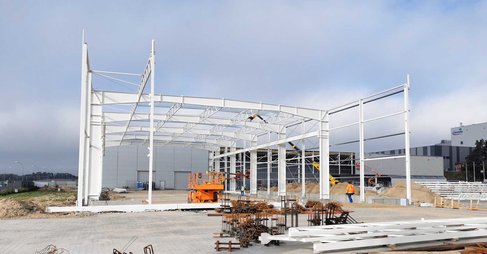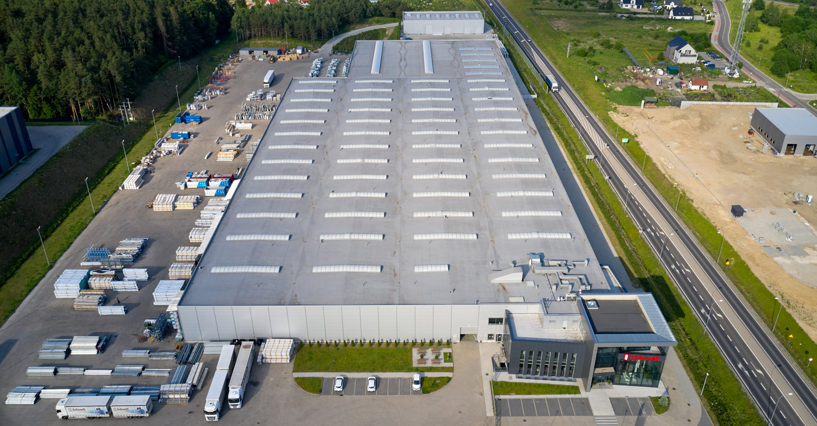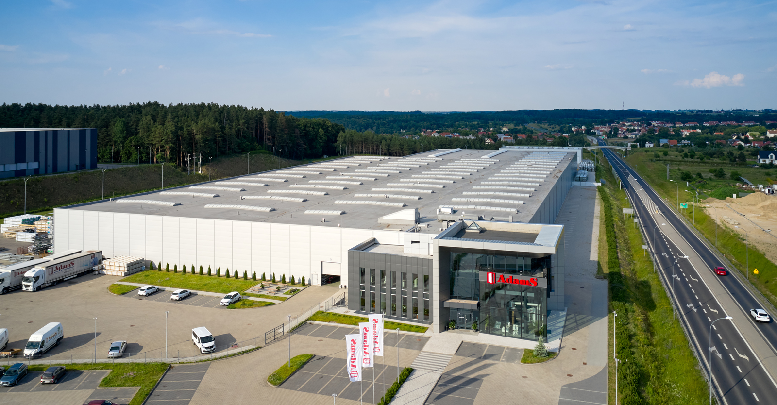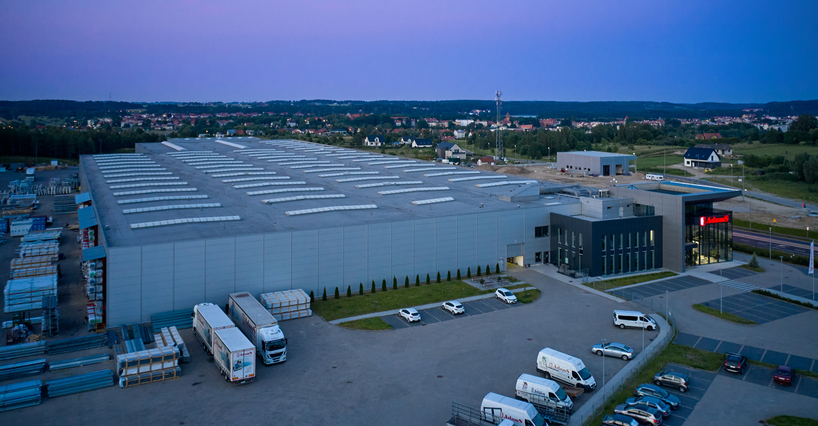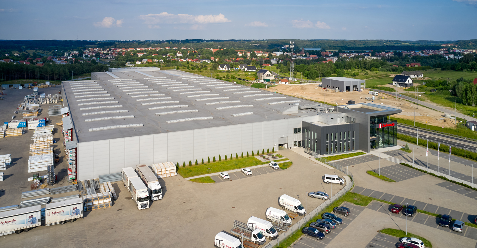 Hala dla producenta okien, firmy AdamS z Mrągowa, powstanie w ramach drugiej współpracy z Inwestorem. Rozbudujemy fabrykę okien i drzwi o halę produkcyjno-magazynową z wiatą oraz halę mechaników. Powierzchnia, którą wykonamy w ramach rozbudowy wyniesie 6.000 m2. Nasza pierwsza inwestycja dla AdamS polegała na wykonaniu hali o powierzchni 16.000 m2 oraz 1.000 m2 wiaty w konstrukcji stalowej. Jesteśmy ponadto autorem projektu budynku biurowego, który stanowi siedzibę główną firmy.