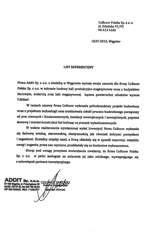W Polsce firma jest obecna od 1996 roku. Pierwszą halę dla Addit oddaliśmy w użytkowanie w 2009 roku i od tego momentu w ramach wieloletniej współpracy zrealizowaliśmy rozbudowę kompleksu hal do 18.000 m2.