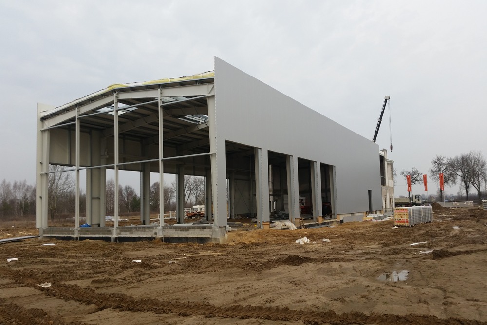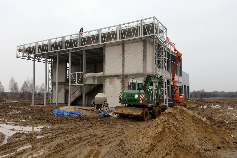 Wykonanie pełnobranżowej zamiennej dokumentacji budowlanej oraz budowa w generalnym wykonawstwie hali serwisowo-magazynowej wraz z częścią socjalno-biurową w Łomnie o łącznej powierzchni 1.400 m2.