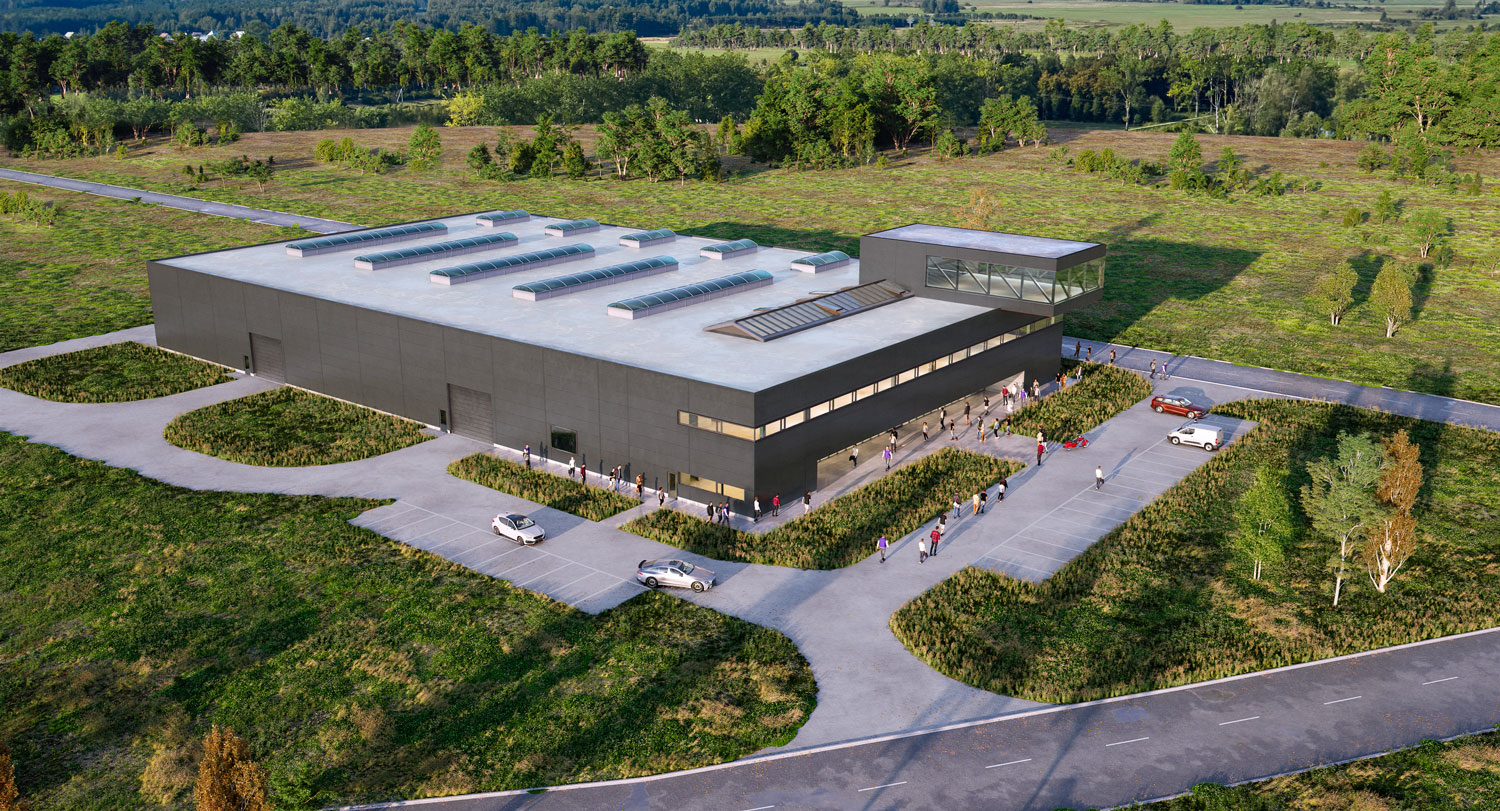Inwestycja przemysłowa o wyrazistej architekturze.
