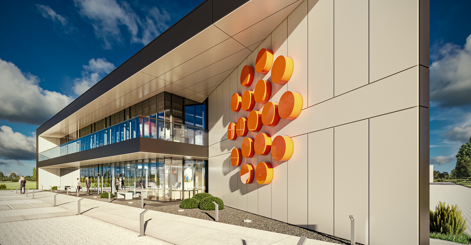 Całość założenia architektonicznego obiektu produkcyjno-biurowego tworzy spójny komunikat marki – nowoczesnej, świadomej swojego wizerunku, a także konsekwentnie budującej swoją obecność w branży reklamowej.