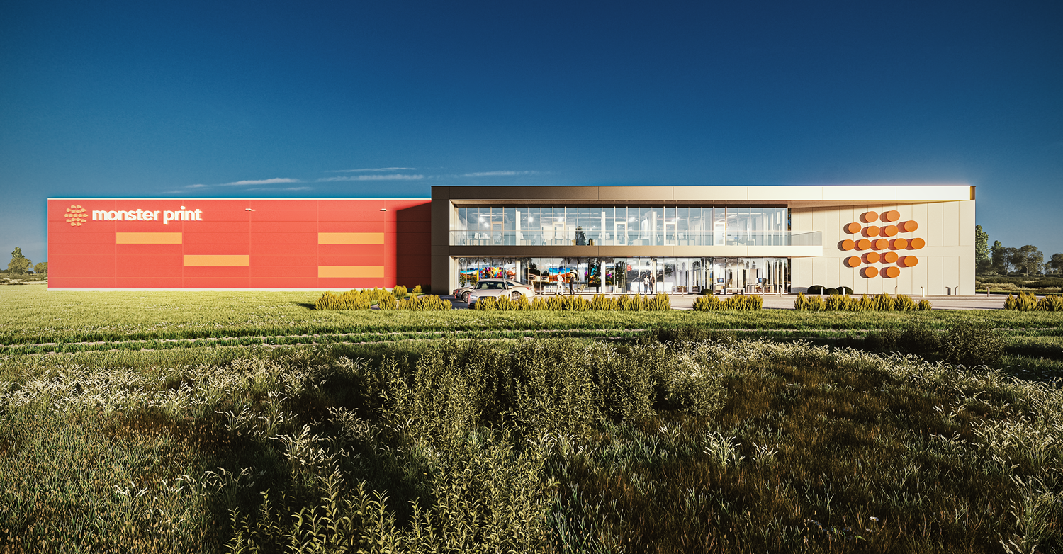 Kompleksowy obiekt produkcyjno-biurowy – nową siedzibę Monster Print, zaprojektowaliśmy jako spójne centrum działalności firmy z branży reklamowej. Inwestycja łączy funkcje administracyjne, ekspozycyjne oraz zaplecze produkcyjno-technologiczne, tworząc przestrzeń odpowiadającą na potrzeby dynamicznie rozwijającego się przedsiębiorstwa.
