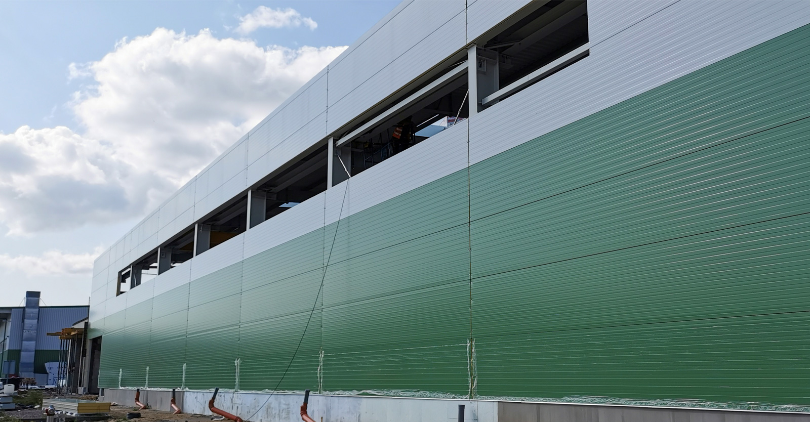 Zakład produkcyjny wyrobów z laminatu utrzymany w podobnej stylistyce do poprzednio zrealizowanej inwestycji.