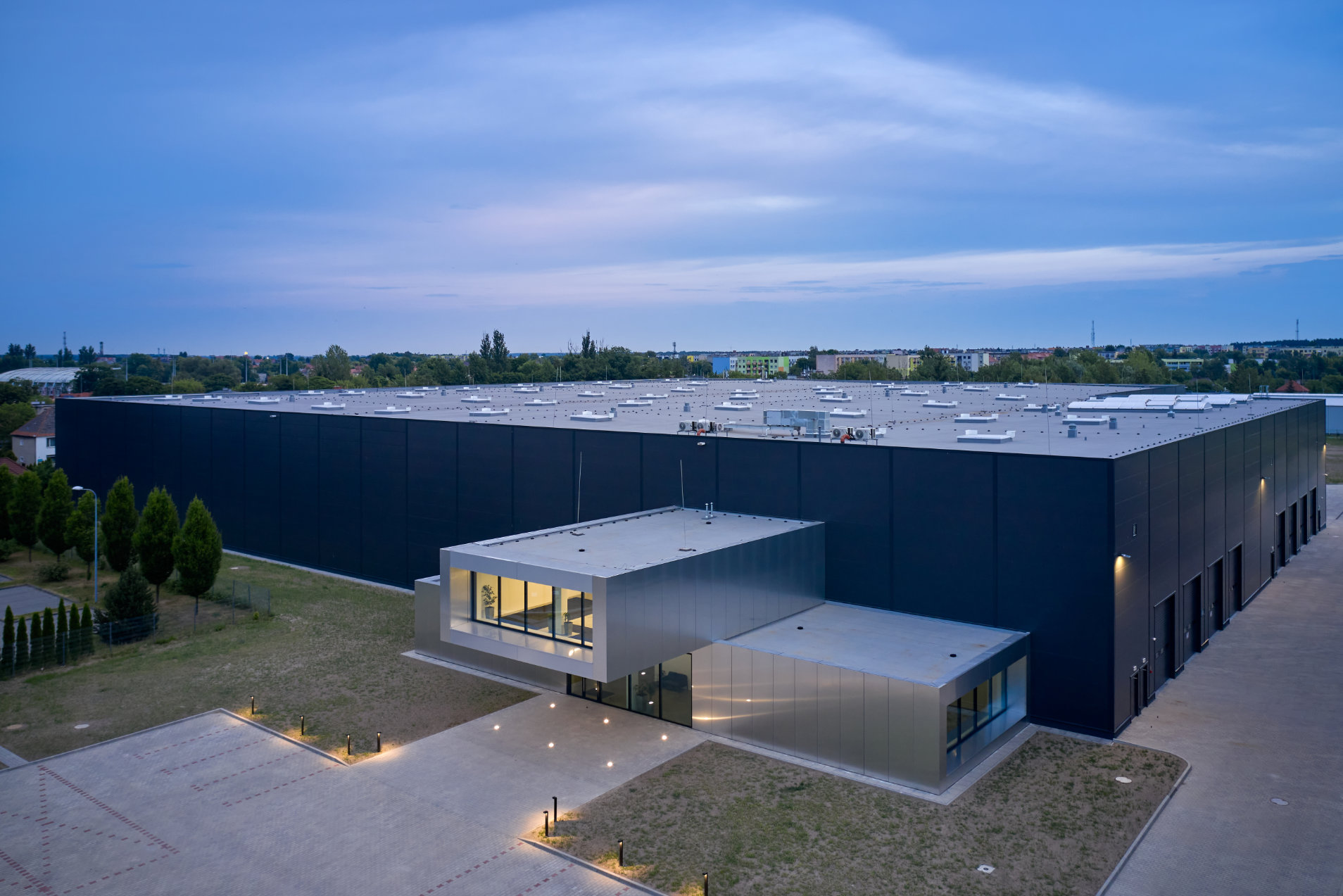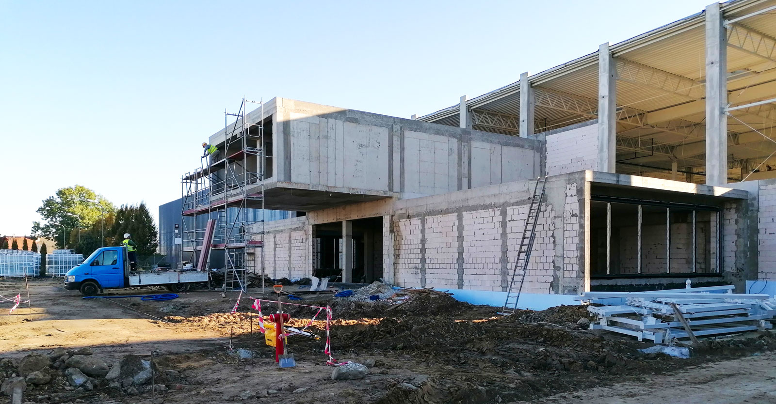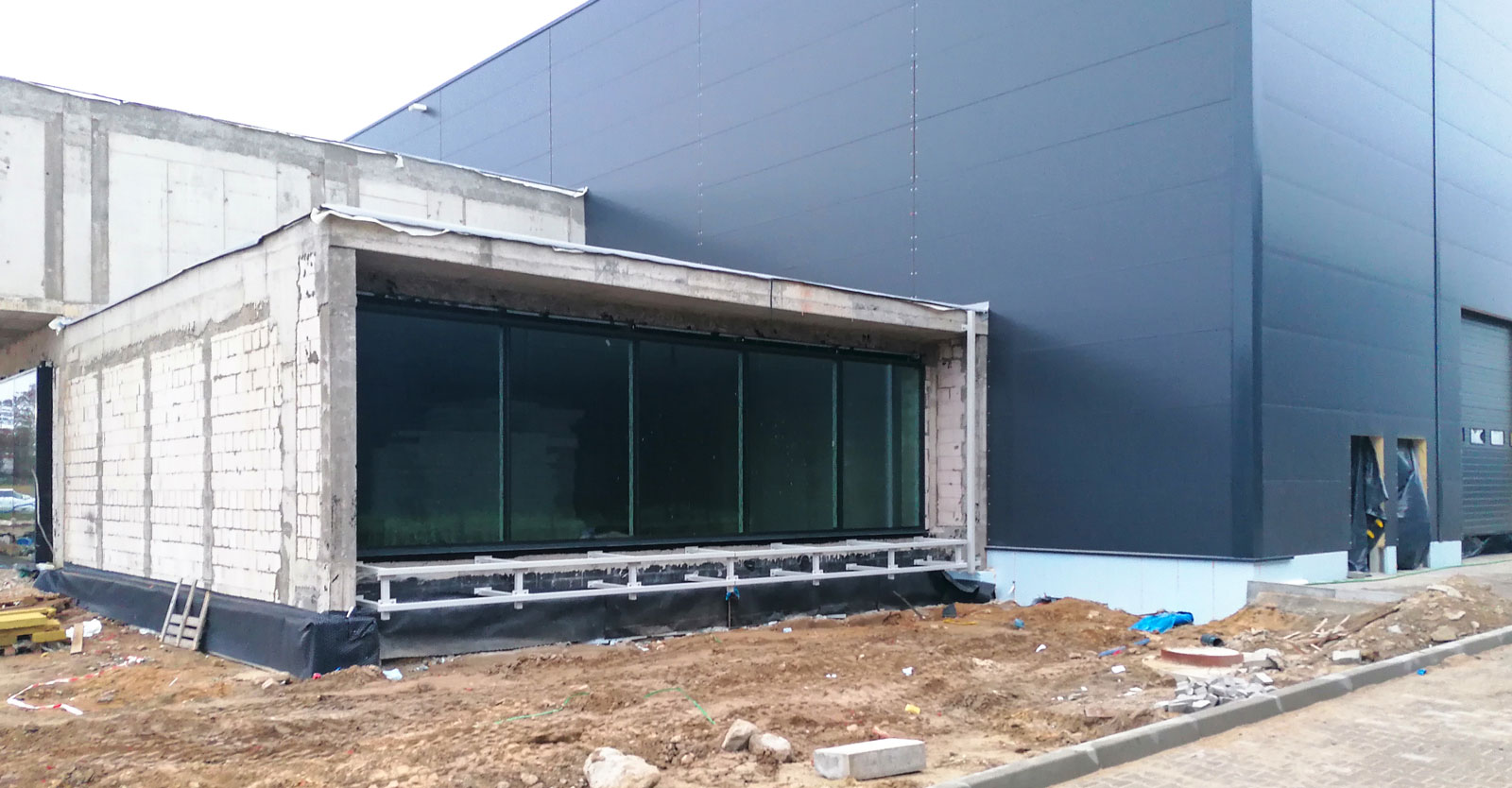 Projekt i budowa hali magazynowej o powierzchni 12.000 m2 dla producenta mebli łazienkowych. Halę realizujemy w systemie generalnego wykonawstwa. Dla Inwestora zaprojektowaliśmy ponadto część wystawienniczo-biurową jako prostopadły układ dwóch brył, ułożonych jena na drugiej. W ten sposób uzyskany efekt zawieszenia nad gruntem górnej części doda obiektowi ekspresji i siły wyrazu.