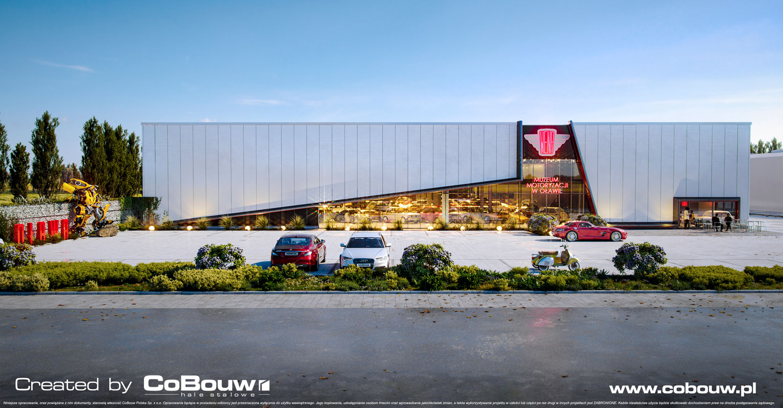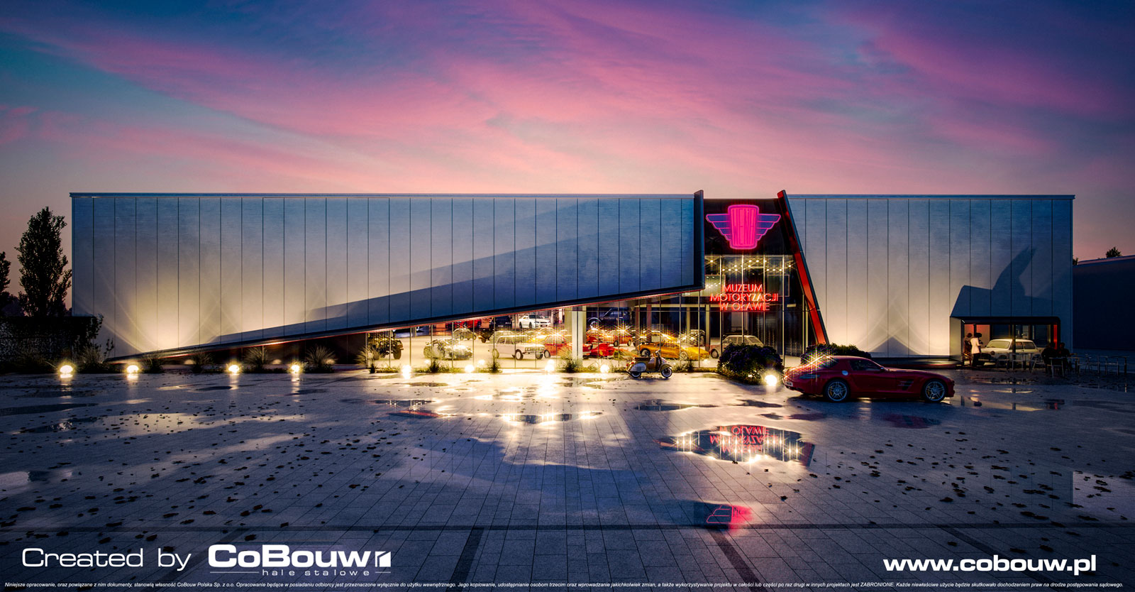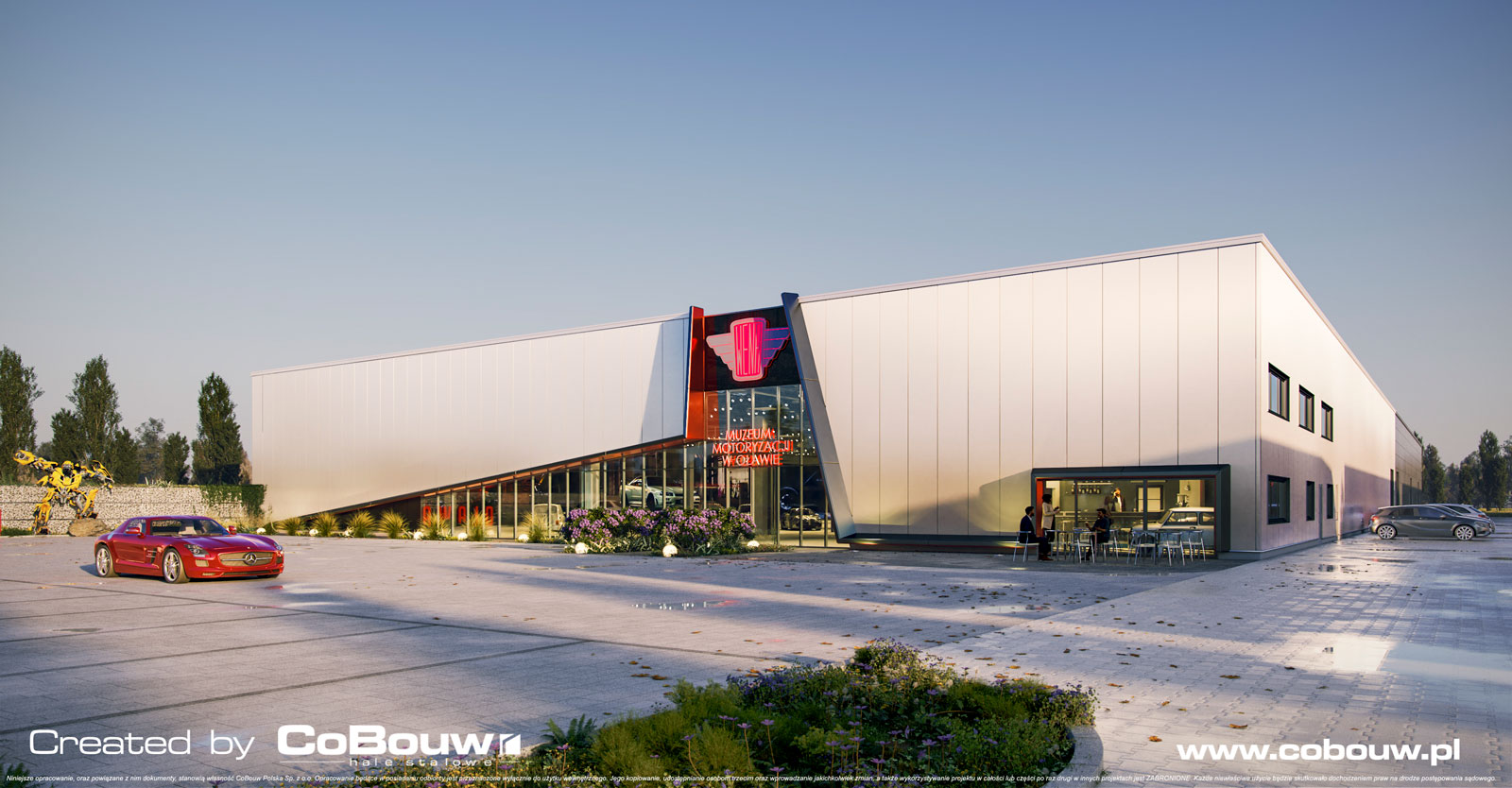 Inwestycja dla Studia Reklamowego polega na zaprojektowaniu i wybudowaniu po klucz hali wystawienniczo-muzealnej zabytkowych, klasycznych aut. Jest to pierwszy obiekt o funkcji muzealnej w naszym portfolio. Przestronna hala, o powierzchni 5.500 m2, doda inwestycji industrialnego charakteru.