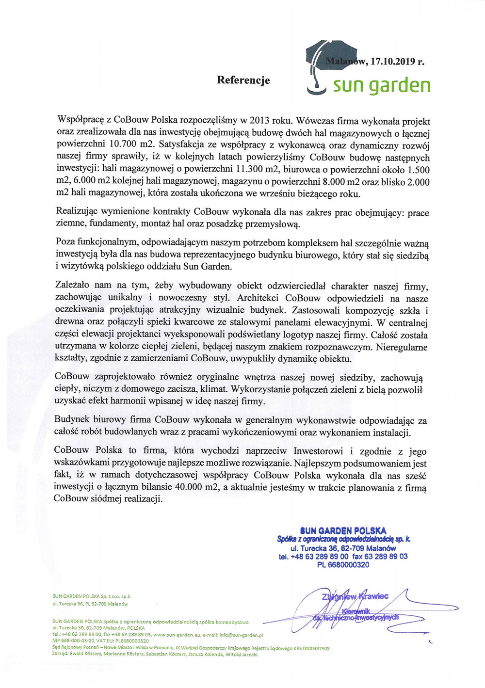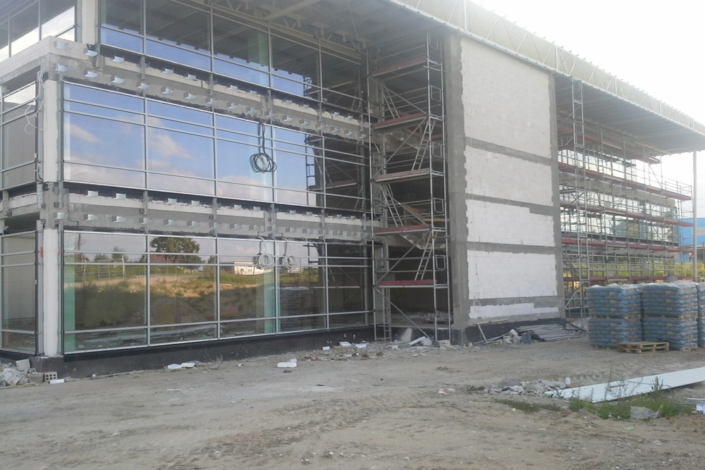 Wykonanie pełnobranżowego projektu budowlanego oraz budowa w systemie Generalnego Wykonawstwa budynku hali magazynowej oraz budynku socjalno-biurowego o powierzchni 1.445m2.