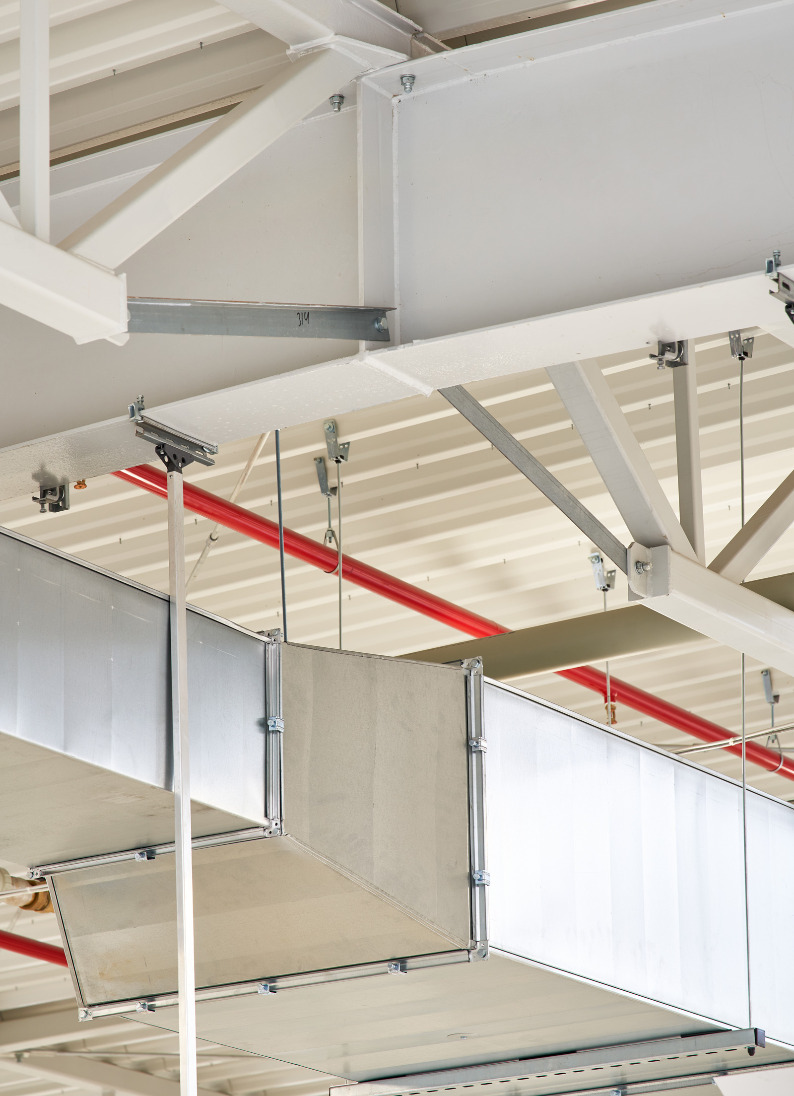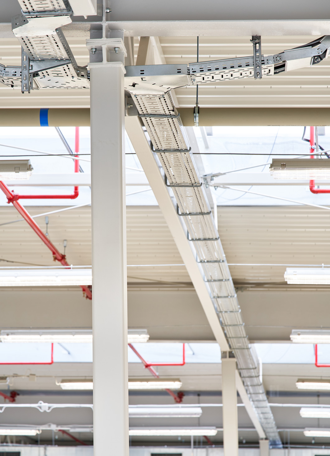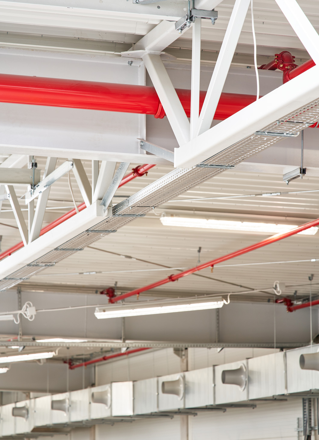 W hali na wysokości ponad 6 m wykonamy piętro z płyt kanałowych, przygotowanych pod obciążenie 800 kg/m2. Płyty zostaną ułożone na ryglach żelbetowych, opartych na wspornikach wychodzących ze słupów. W hali zostanie wykonany szyb windowy z dźwigiem towarowo-osobowym o udźwigu 2.600 kg oraz maszynownią.