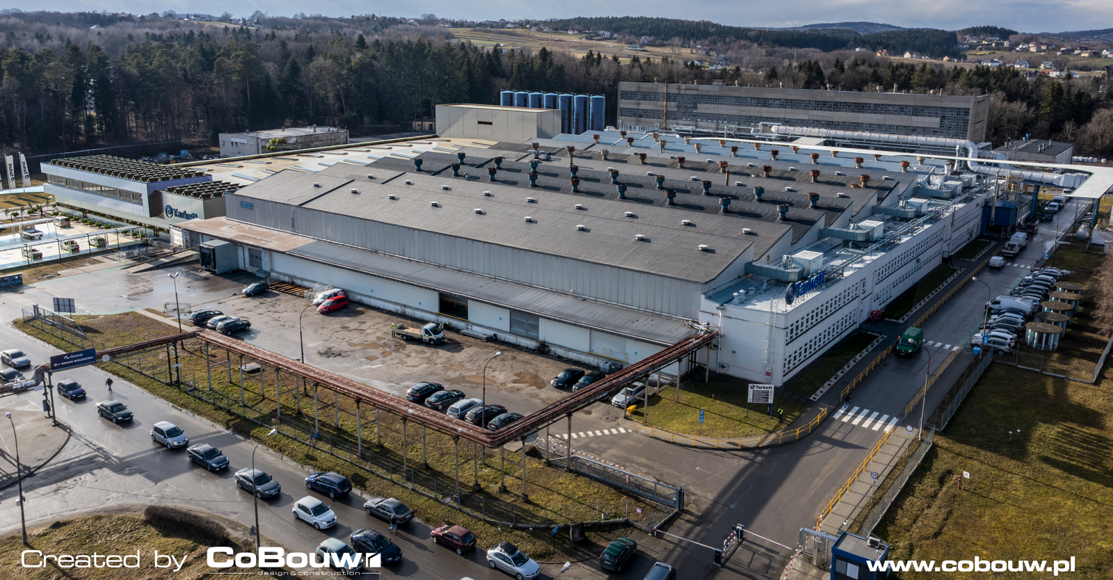 Hala z fotowoltaiką dla Tarkett Polska. Wiodący producent rozwiązań podłogowych i ściennych, zlecił nam rozbudowę zakładu produkcyjnego w Jaśle. Rozbudowa obejmie 2 etapy prac budowlanych i docelowo zwiększy powierzchnię obiektu o 9.000 m2.