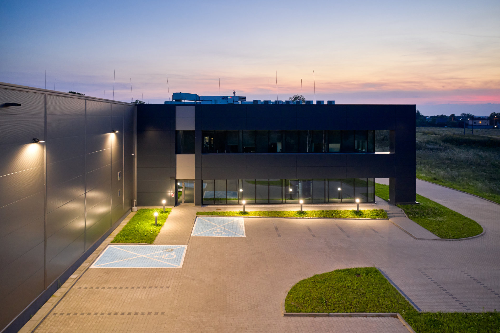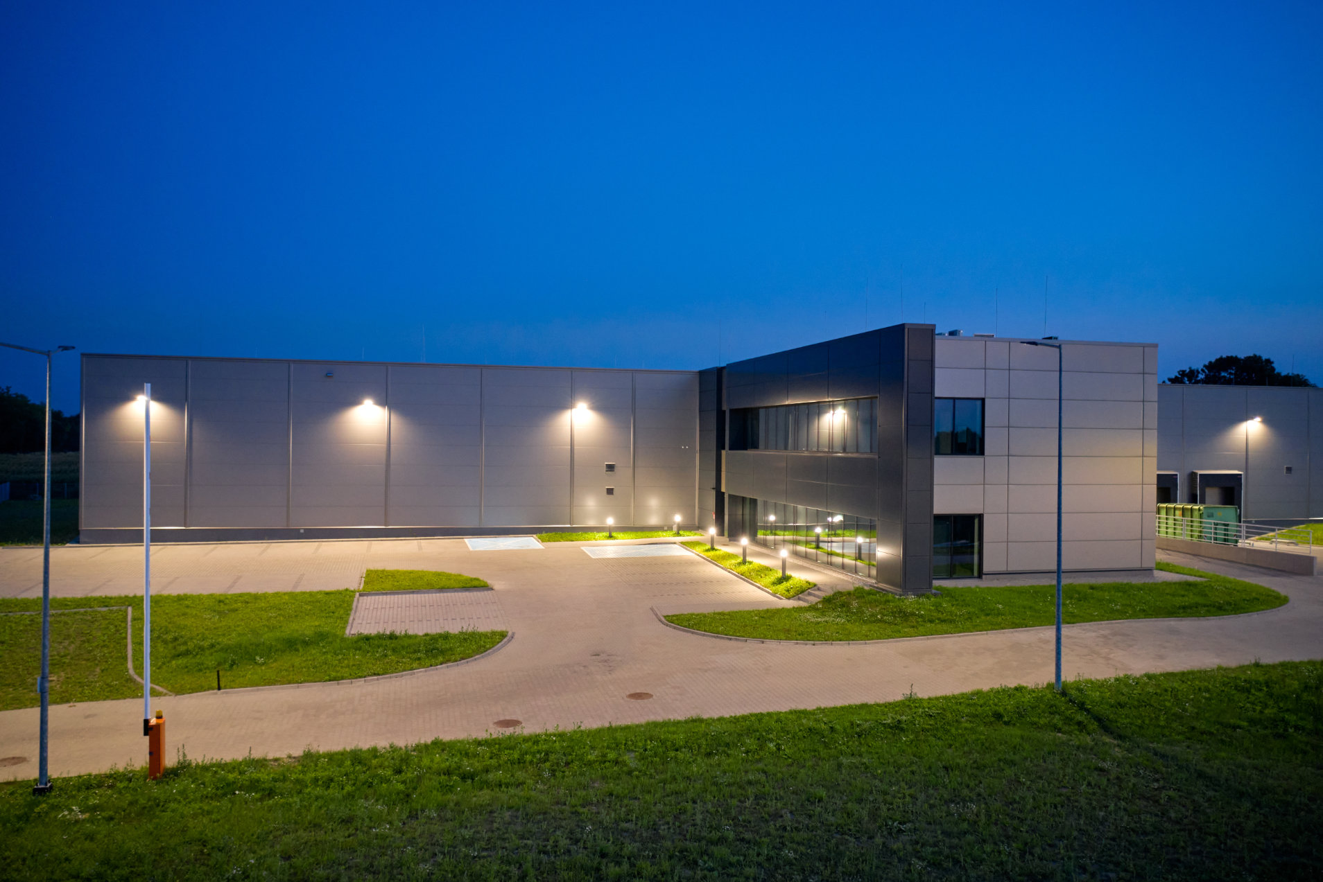 Już w ramach pierwszego etapu inwestycji stworzyliśmy kompleksowy design zakładu produkcyjno-magazynowego, który przedstawiliśmy na licznych wizualizacjach 3D. Zaprojektowaliśmy podświetlany, przeszklony łącznik między halami, który podkreśli nowoczesny wymiar firmy i zapewni charakterystyczny efekt wizualny.