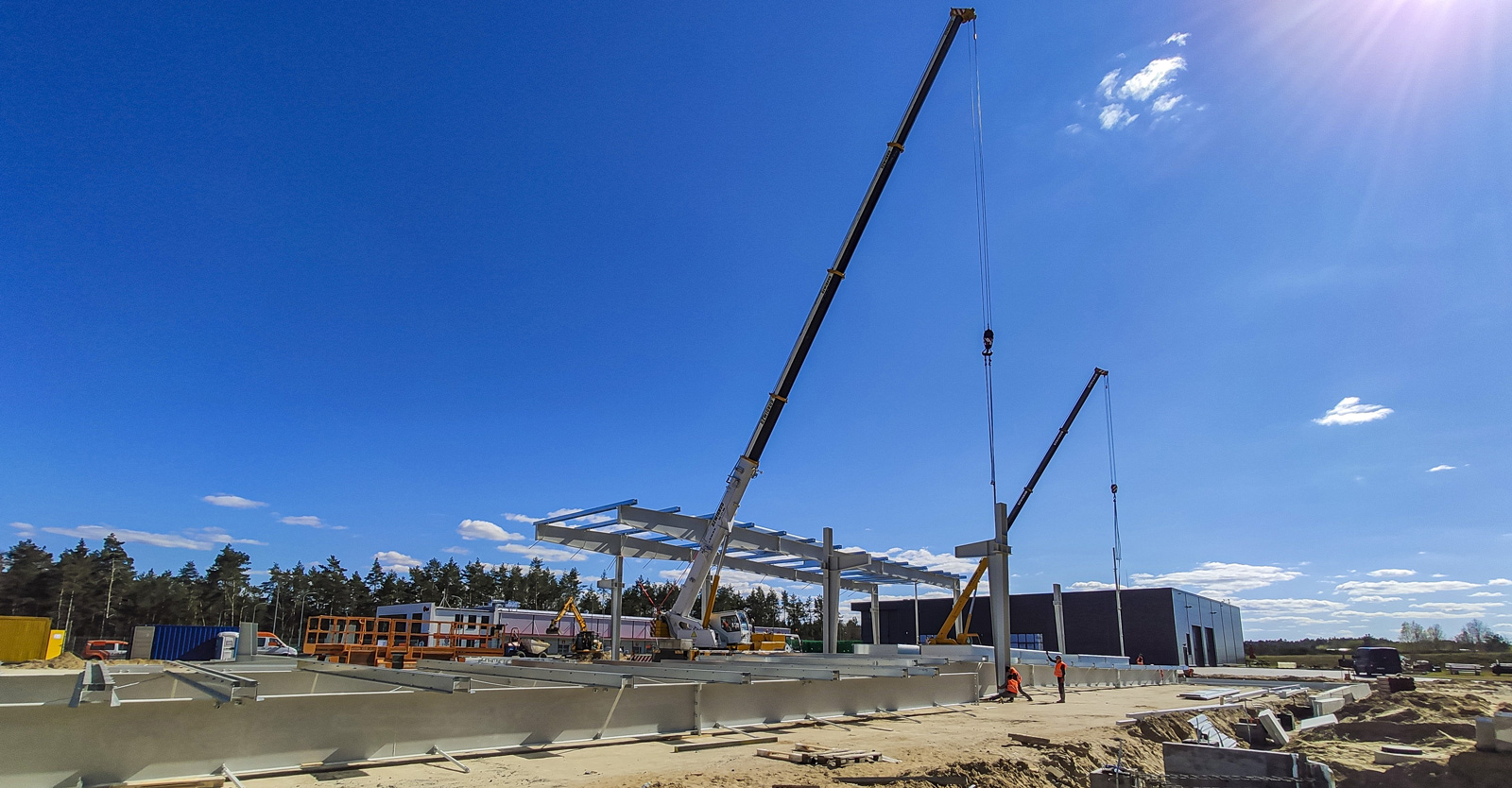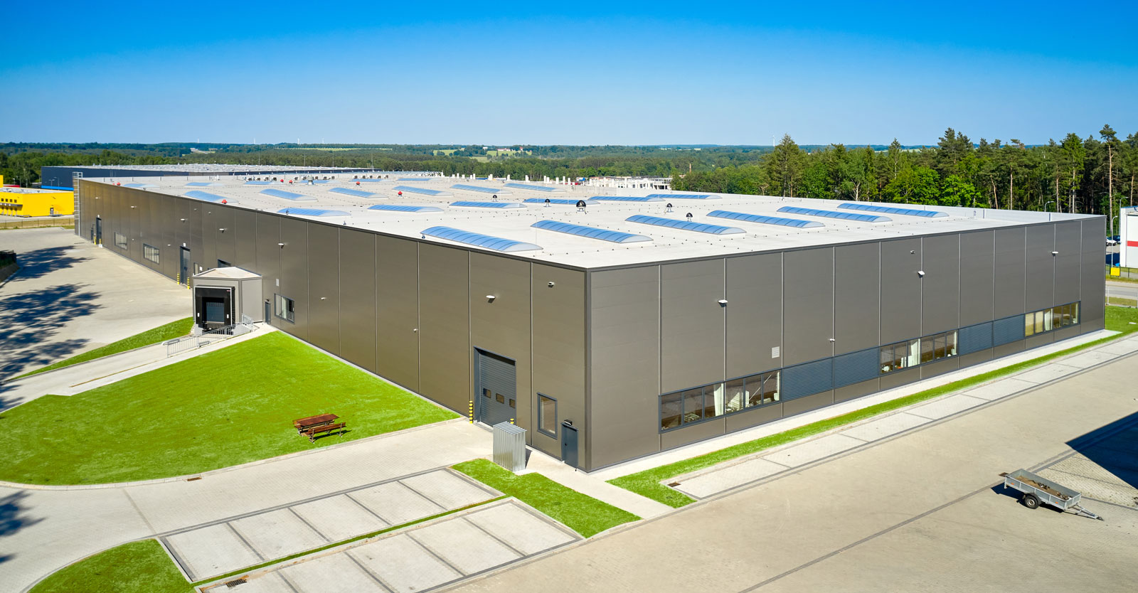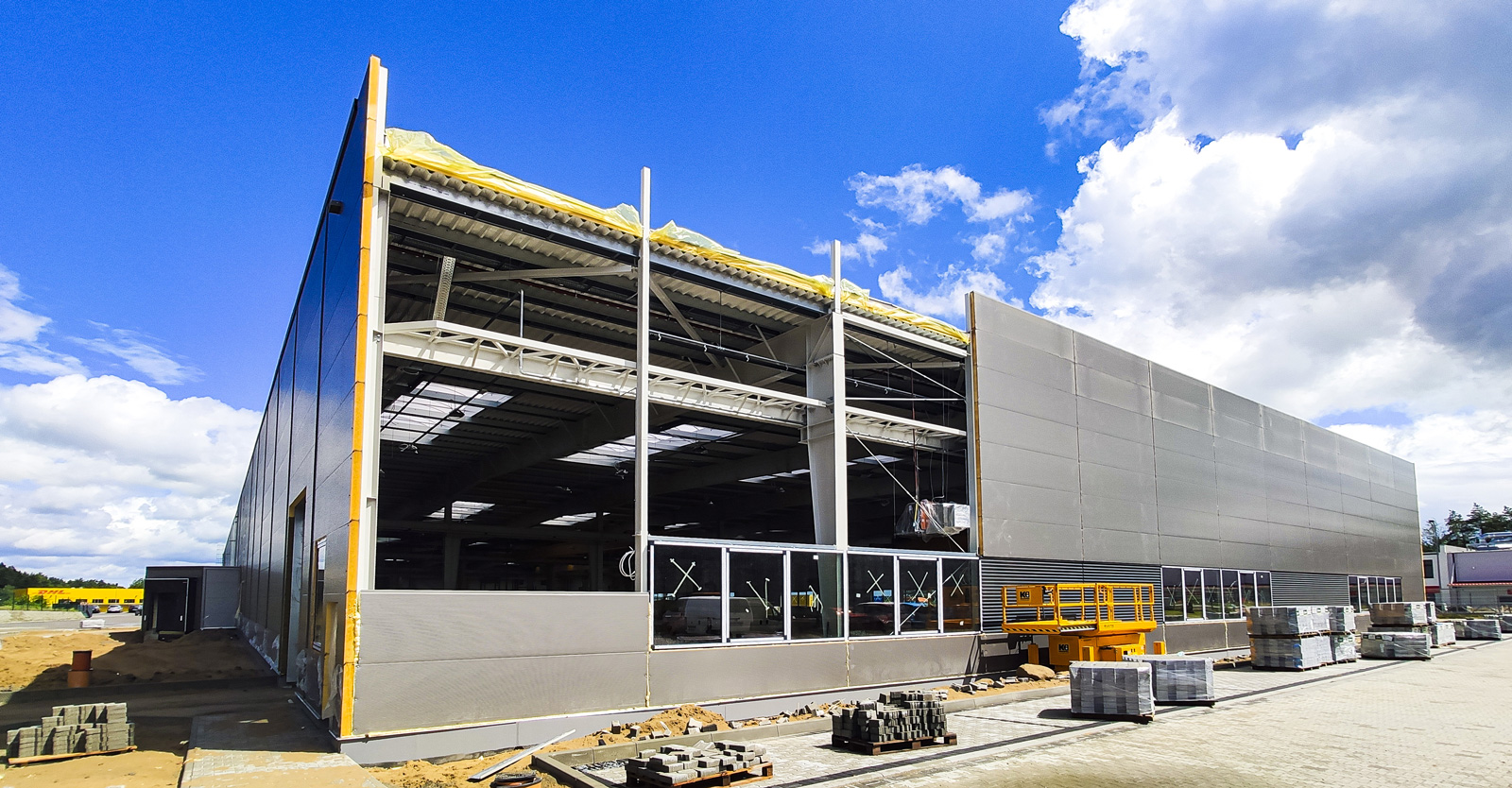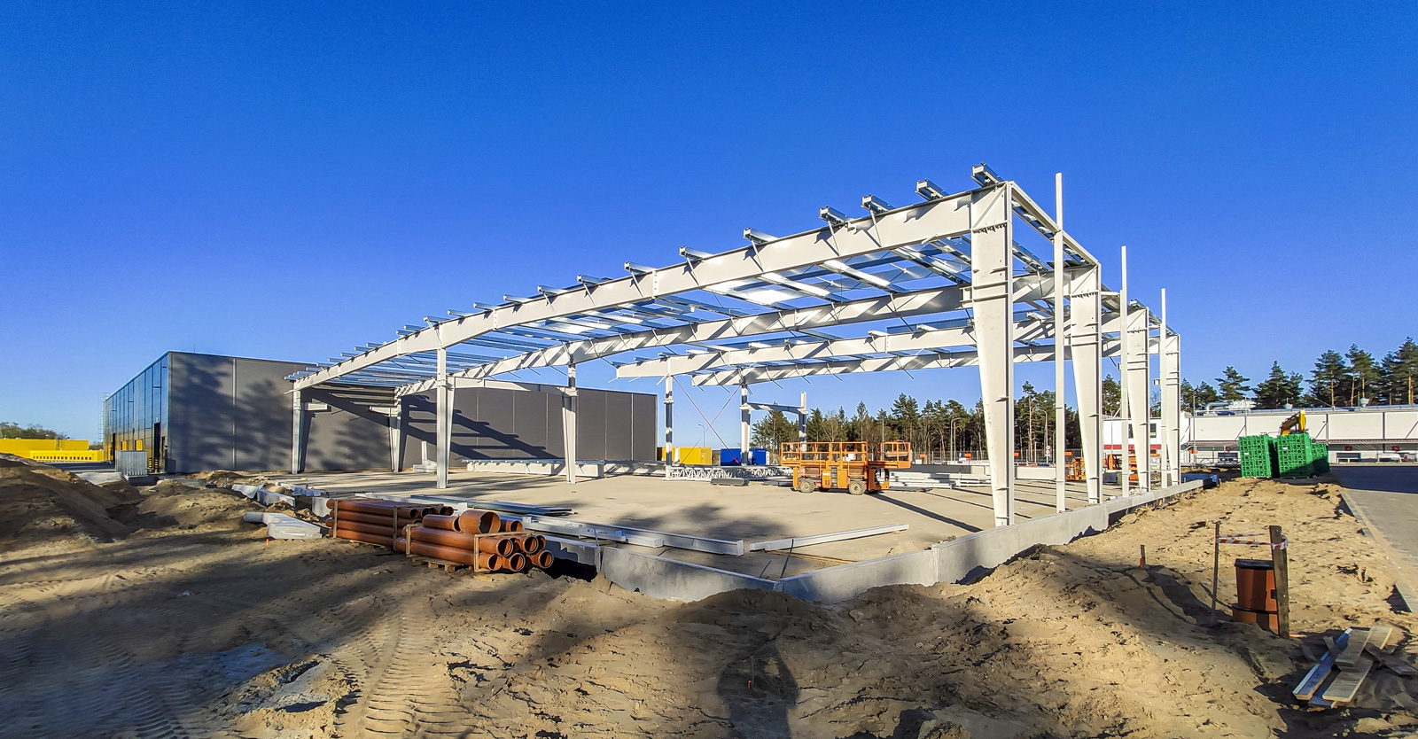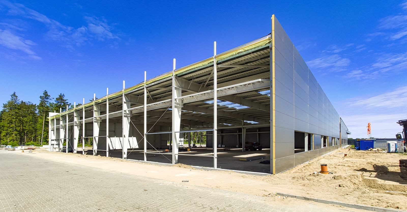 Rozbudowaliśmy wybudowaną w 2018 roku halę produkcyjno-magazynową o 3.500 m2. Inwestycję zrealizowaliśmy w systemie “zaprojektuj i zbuduj”. W ramach generalnego wykonawstwa zrealizowaliśmy prace wokół nowobudowanej hali stalowej, w tym place manewrowe, drogi i parkingi, a także odtworzyliśmy istniejącą drogę.